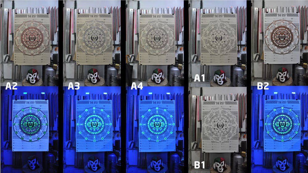 A4 Black+Gold+phosphorescent on Papago White Paper / series of 8
