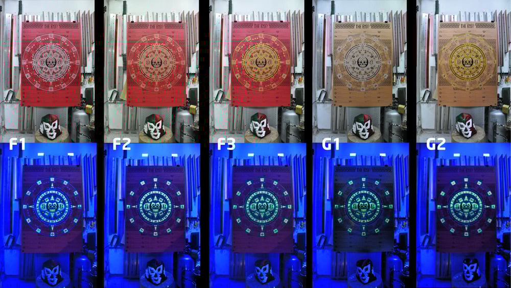 F3 Black+Gold+phosphorescent on Red Paper / series of 4