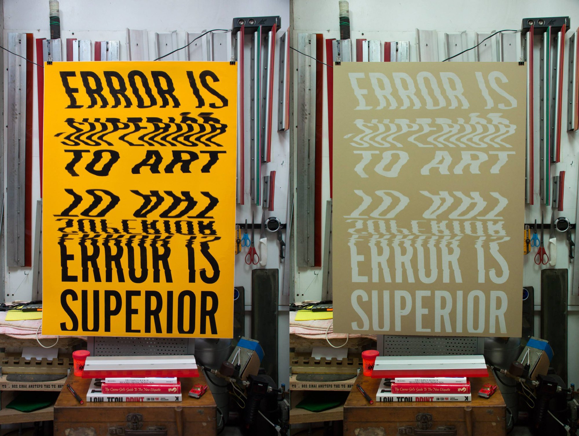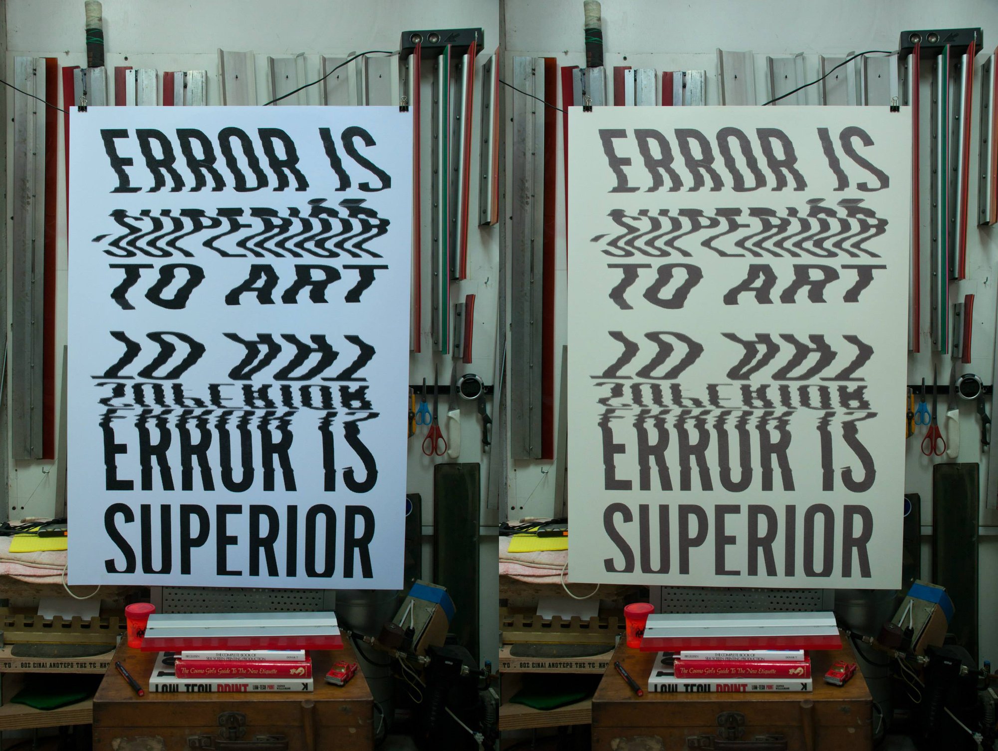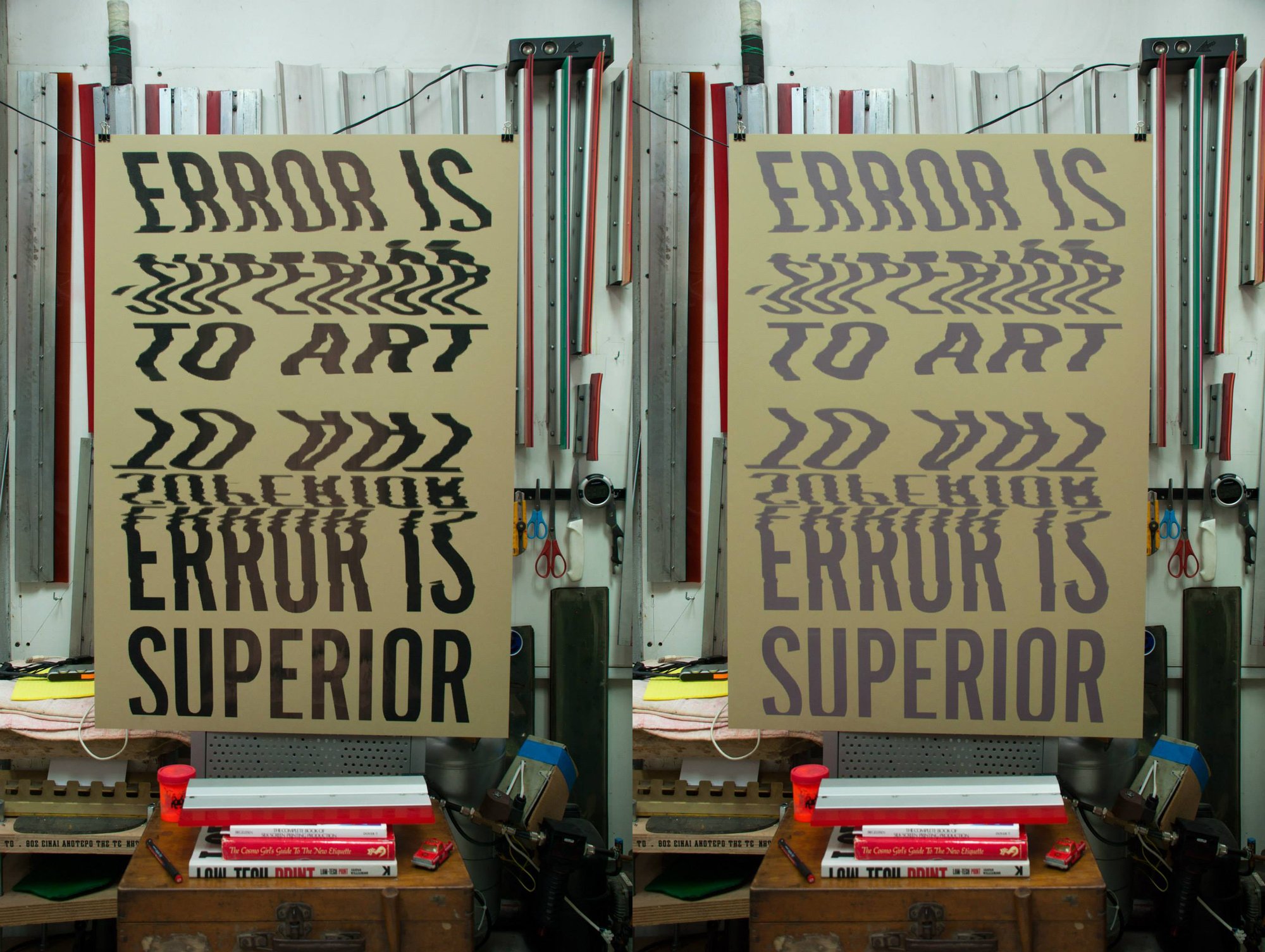 “Error is Superior to Art” is an ongoing print project that attempts to redirect the public’s view and awareness to the value of printing errors and the magnificence intrinsic in them. It is a unique opportunity to change perspective and see something different from what you know so far.