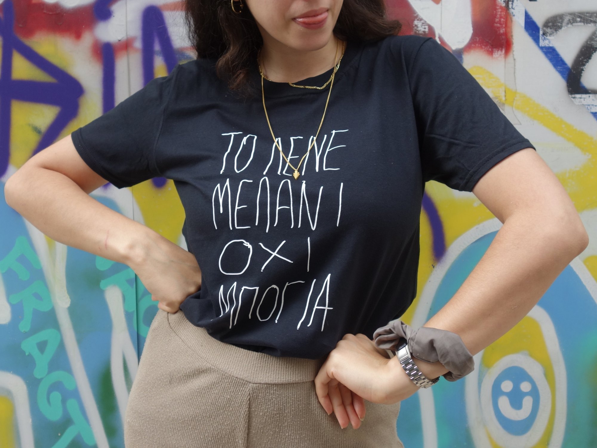 One color discharge screen print with water based ink on 100% Combed Organic Cotton t-shirt by Continental, 155 g. Comes with silkscreen stickers and other goodies.